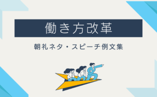 「働き方改革」のワードに注目したオリジナルの朝礼・スピーチネタ例文集です。朝礼で話すスピーチネタに困っていませんか?本記事では数ある朝礼ネタの中から「働き方改革」をテーマに朝礼ネタを厳選して紹介しています。すべて例文付きですので特に急いで探している方に必見です。